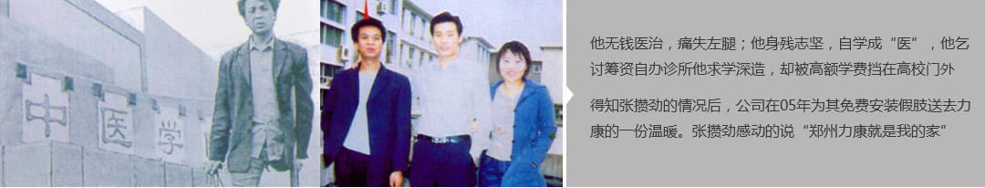 鄭州市力康假肢矯形器有限公司(簡(jiǎn)稱(chēng)力康),是一家專(zhuān)業(yè)從事假肢矯形器的設(shè)計(jì)、研發(fā)、制作及裝 配的專(zhuān)業(yè)機(jī)構(gòu)。成立于1992年是河南省唯一一家福利企業(yè)。力康下設(shè)業(yè)務(wù)部、技術(shù)部、住院部、康復(fù) 部、售后服務(wù)部,并配有現(xiàn)代化的裝配車(chē)間和功能齊全的訓(xùn)練大廳,為殘疾朋友康復(fù)訓(xùn)練提供了可靠 保障??偨?jīng)理穿戴假肢多年,有著豐富的臨床經(jīng)驗(yàn)和親身體會(huì);多年來(lái),力康已為全國(guó)幾十萬(wàn)名殘疾 朋友安裝上舒適、美觀、耐用的假肢和矯形器具,使他們更大限度地恢復(fù)了正常的工作和生活。“產(chǎn) 品即人品”的質(zhì)量理念、先進(jìn)的技術(shù)、實(shí)惠的價(jià)格、完善的售后服務(wù)是力康取勝的法寶……